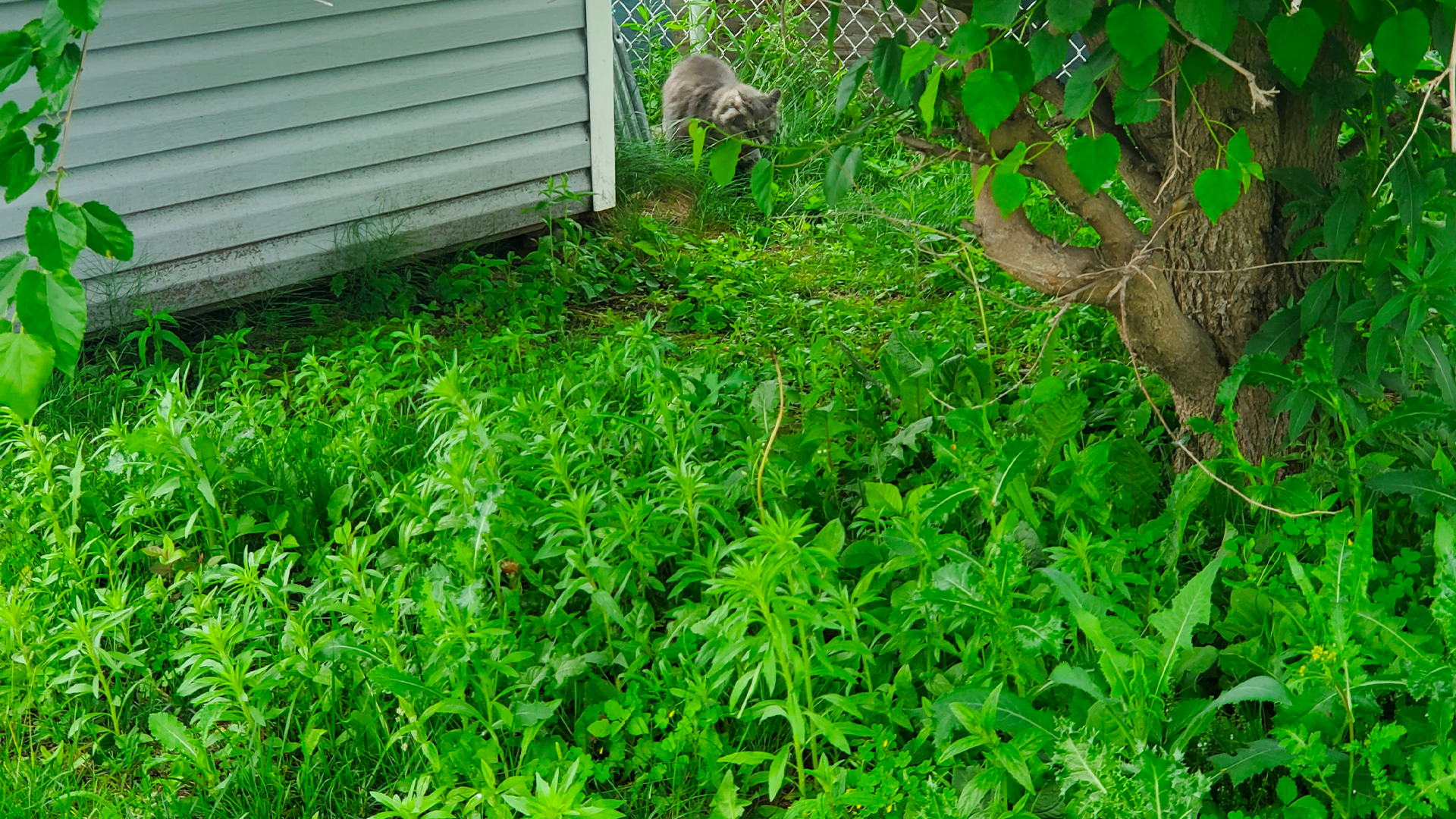 Gazon dans une cour devant une maison